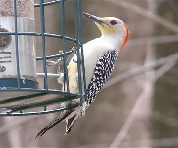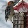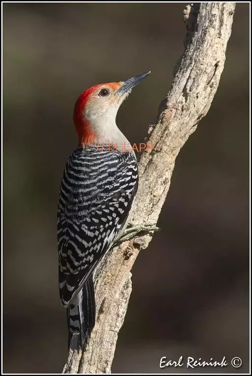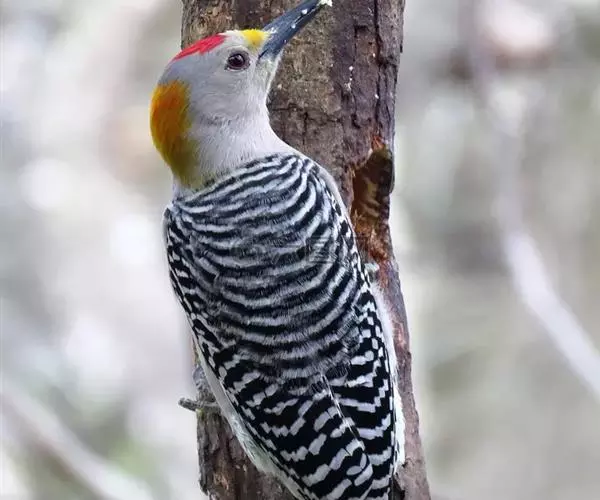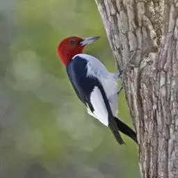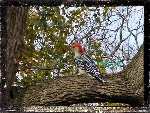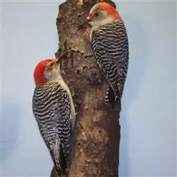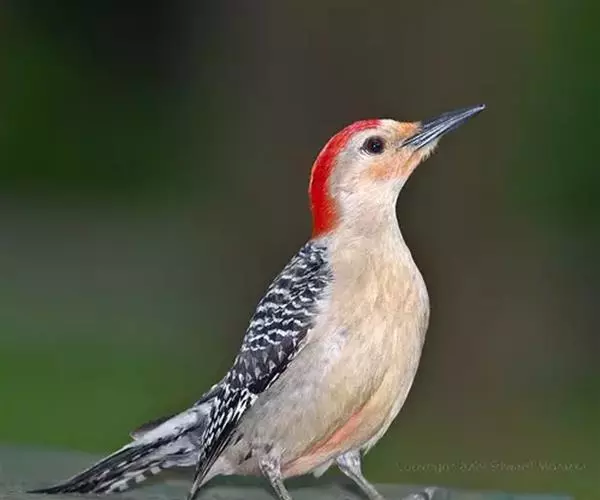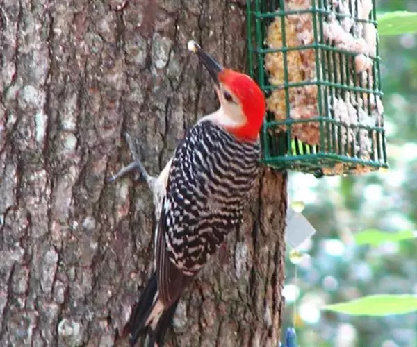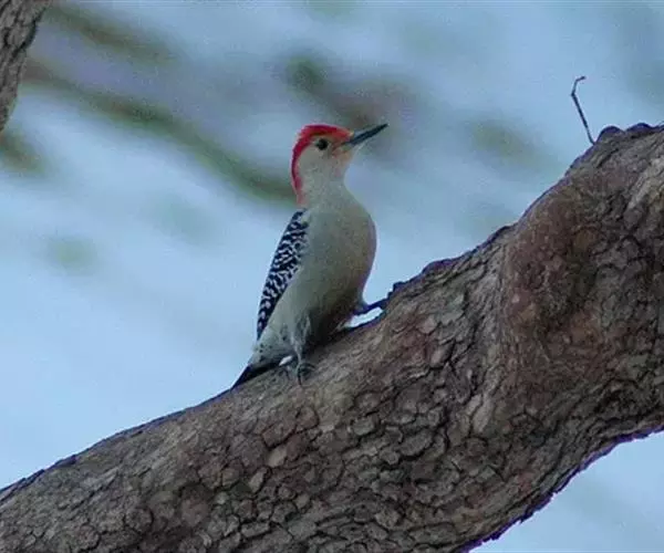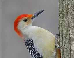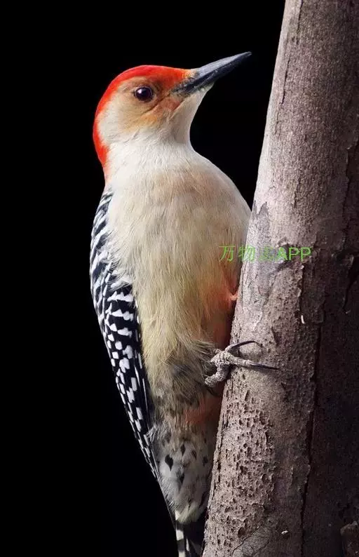 红腹啄木鸟(学名:Melanerpes carolinus)成年雄鸟头项有红帽,翅膀和上体是黑白相间的斑纹状羽毛,腹部有一片红羽毛。头亦大,但颈较长,嘴强硬而直,呈凿形,鼻孔裸露;尾羽羽干大都硬挺且尖,尾羽12片,初级飞羽9片。头骨为蜥腭型,锄骨被一些成对的骨片所代替,颌腭骨细小远离两侧,胸骨后端每侧有2切刻,胸骨柄分叉。腿肌肉缺栖肌和副股尾肌;角舌骨延成环带状,两侧自咽喉绕过枕部至上嘴基。生活于湿地生境,枯在树木,低地沼泽森林,也出没于茂密的森林,河流沿岸。分布于北美洲。