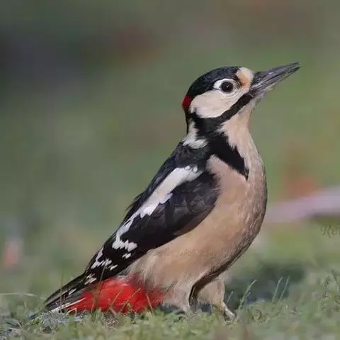幼鸟,上部的斑纹不太明显,比成鸟更发白。胸部是变化的暗黑色条纹。雌性亚成鸟腹部往往没有红点。而雄性亚成鸟腹部的红色也较淡。小雌鸟有没有红色的颈部,小雄鸟头顶的红点也很少。亚成鸟的褐虹膜色。