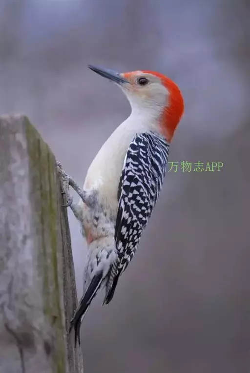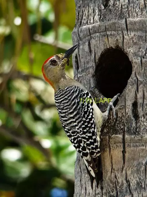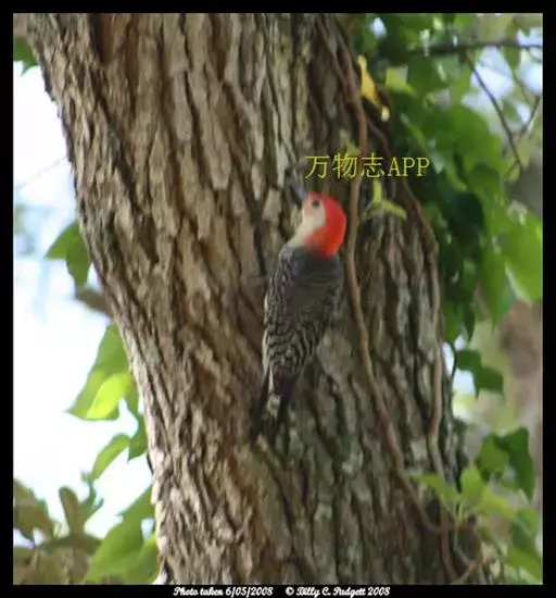 红腹啄木鸟成年雄鸟头项有红帽,翅膀和上体是黑白相间的斑纹状羽毛,腹部有一片红羽毛。头亦大,但颈较长,…