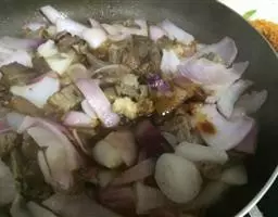 9.汤汁炒至浓稠, 倒入肉丁