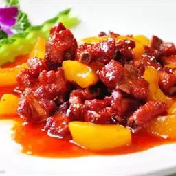 樱桃肉是一道江苏省苏州市的传统名菜之一,属于苏菜系。始创于江苏,清乾隆年间传入宫中,山药酒樱桃肉被记录进清《御茶膳房档》 ,特点色泽樱红,光亮悦目,酥烂肥美。其颜色红亮,形态圆小,皮软味甜咸,富油脂,是上佳的下酒菜和下饭菜。樱桃肉是最起码的条件是色诱,如肉面要切得如樱桃般大小,排列整齐,色泽也应像樱桃般鲜艳透红、亮丽诱人。另外,川菜,东北菜有同名菜肴,做法不同。