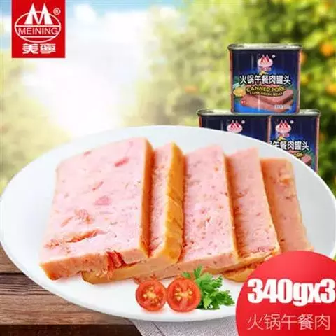 午餐肉:一种罐装压缩肉糜,通常原料是猪肉,牛肉等。把午餐肉切成片,可以用来夹面包食用,…