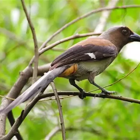 棕腹树鹊是鸦科、树鹊属中型鸟类,体长35-45厘米。整个头、颈、颏、喉至上胸烟灰褐色,其余上、下体…
