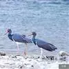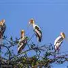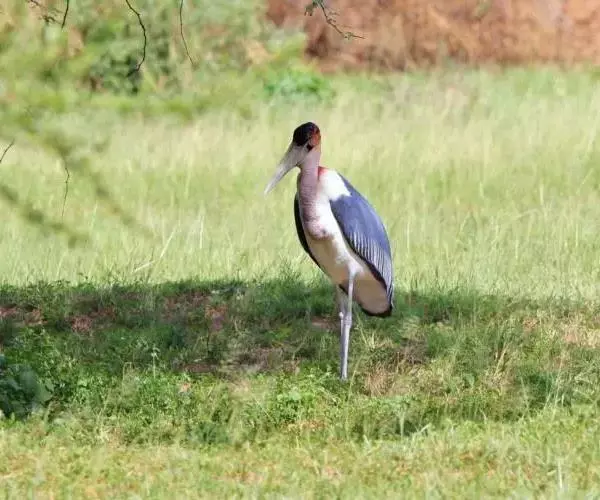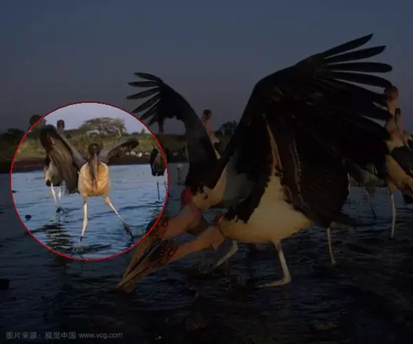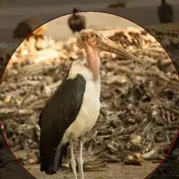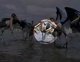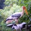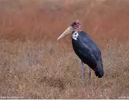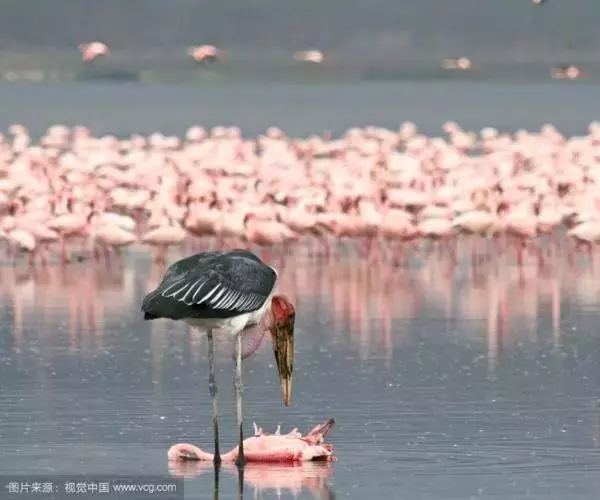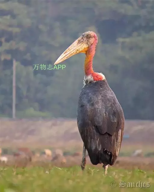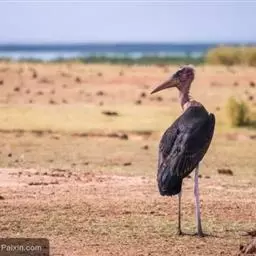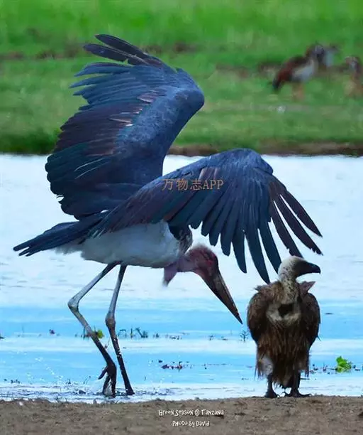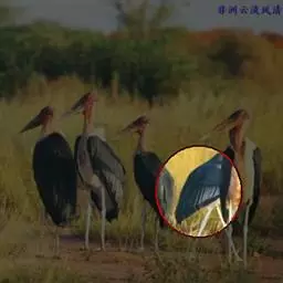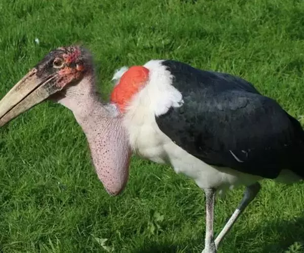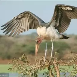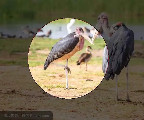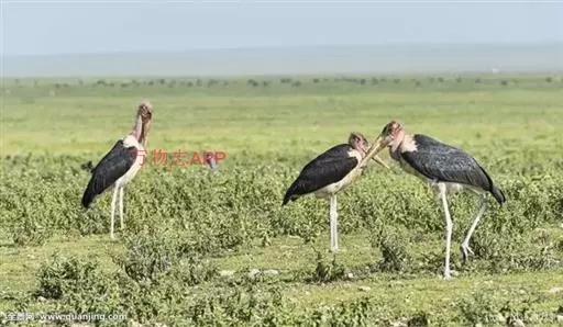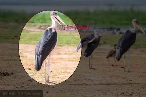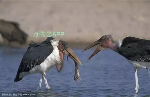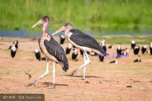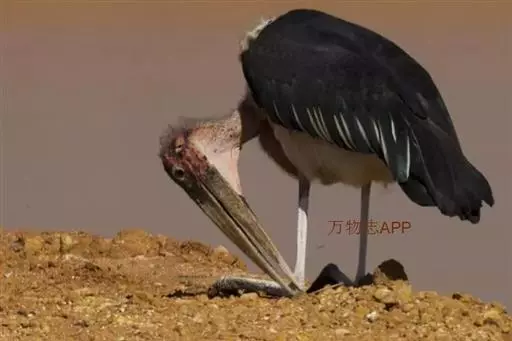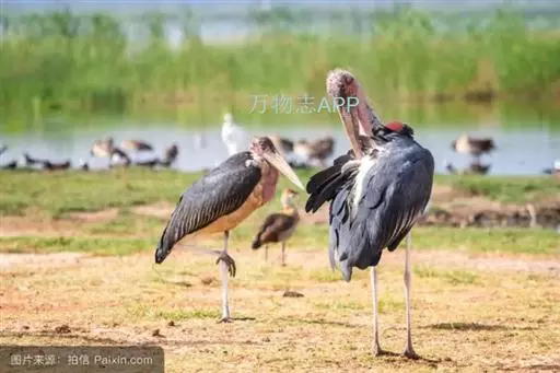 非洲秃鹳 非洲秃鹳栖居在河流、湖泊、沼泽、草地等地带,甚至靠近人类居住区,集群,日行性,飞翔沉重、缓慢。留鸟。颈下部的膨胀肉垂(喉囊)用于求偶炫耀。