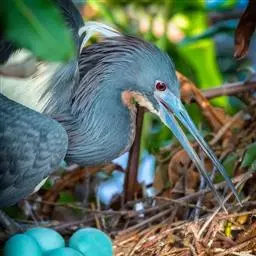 繁殖期不固定,营巢于大树上,每产1~4卵,孵化期29~31天,晚成鸟,3~4岁性成熟。