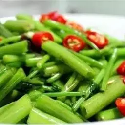 主料:干瑶柱(30克)、丝瓜(500克)、红椒(半只)