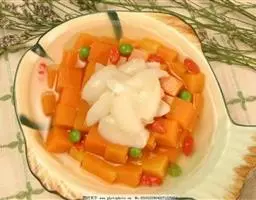 瑶柱常用来煮粥、煲汤或蒸制,这道清蒸菜,就是用丝瓜与瑶柱同蒸,绿如翡翠的丝瓜,加上金黄浓香的瑶柱,令人垂涎三尺!丝瓜中维生素C含量较高,可用于抗坏血病及预防各种维生素C缺乏症。而且丝瓜中维生素B1等含量亦高,有利于小儿大脑发育及中老年人保持大脑健康;此外丝瓜藤茎的汁液具有保持皮肤弹性的特殊功能,有美容去皱之功效。