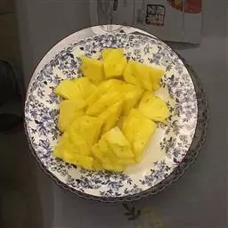 3 将一张铝箔纸放在碟上,压制成方型的盒状,摆入丝瓜块。