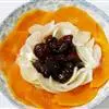 8 取出蒸好的瑶柱丝瓜,在上方剪一个十字缺口撕开,洒上红椒丝,即可上桌。