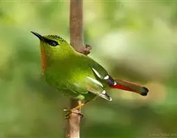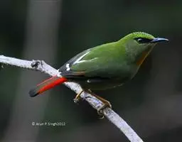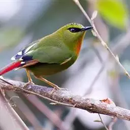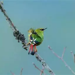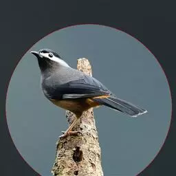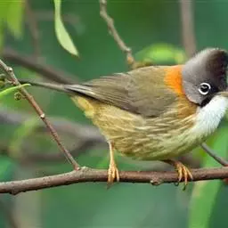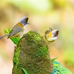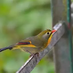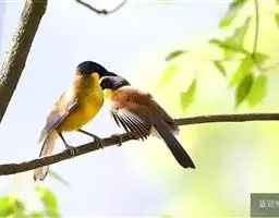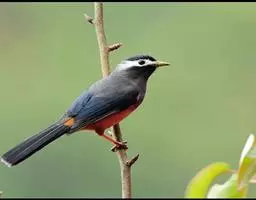银耳相思鸟小型鸟类,体长14~18厘米。头顶黑色,耳羽银灰色,前额橙黄色;外侧飞羽橙黄色,基部朱红色,…