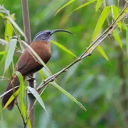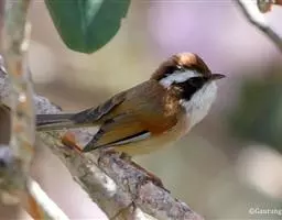 剑嘴鹛:中型鸟类,体长21-22厘米。嘴特别细长而向下弯曲,头顶和头侧烟灰色具长而窄的白色眉纹,…