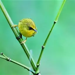 金头穗鹛小型鸟类,体长10~11厘米,是一种黄色小鸟。头顶金黄色有黑色纵纹,眼先黑色,…