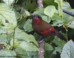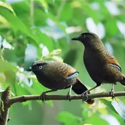 蓝翅噪鹛:噪鹛科、彩翼噪鹛属动物。中型鸟类,体长22-25厘米。上体棕橄榄褐色密被黑色鳞状斑,…
