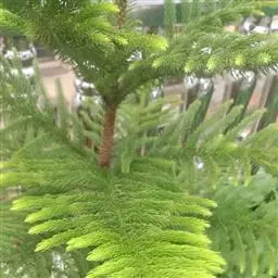 澳洲杉,常绿乔木,一般盆栽为幼树,高在2米以下。喜温暖、潮湿的环境,树冠尖塔形,深绿色。茎干直立,…