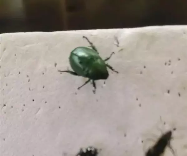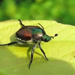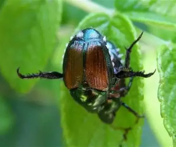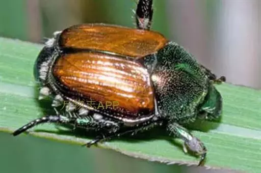 东方金龟(SericaorientalisMotsch),属鞘翅目,金龟科。主要危害苹果、山楂、梨、李、杏、樱桃等果树 。
