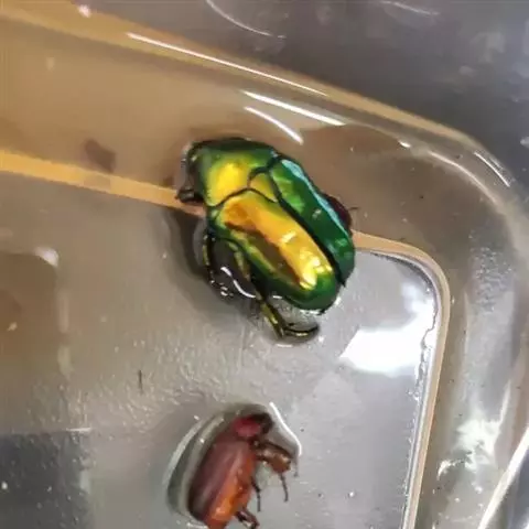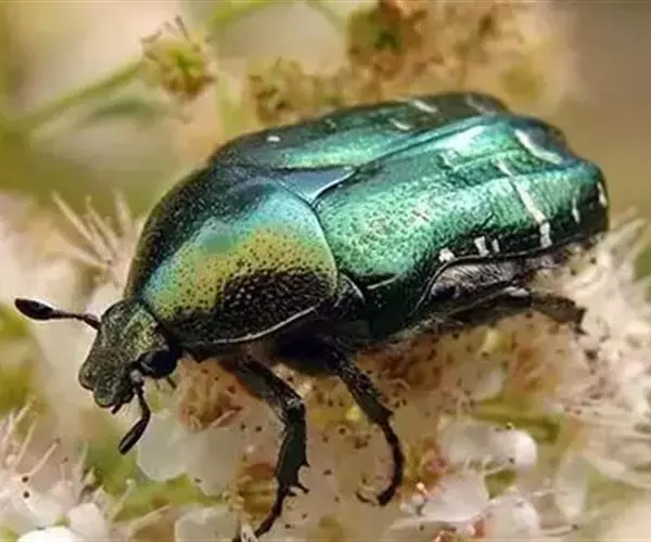小青花金龟(OxycetonlajucundaFald),属鞘翅目,金龟科。主要危害山楂、苹果、梨、杏等果树 。