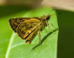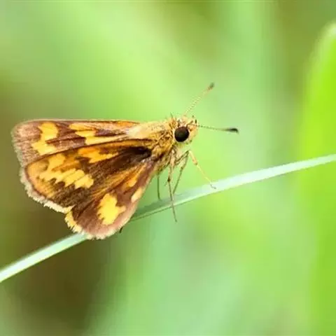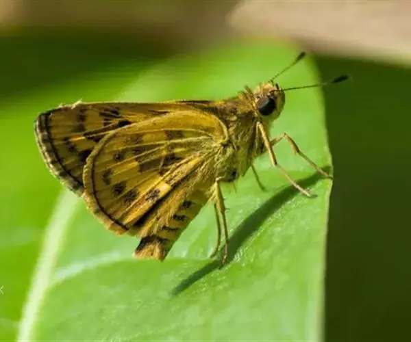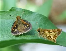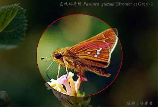 黄斑弄蝶Potanthus confucius Felder是近年来发现在我地区为害水稻的新害虫。在国内尚未见报道。 由于幼虫在水稻和黄茅草上绝大多数以单叶卷筒为害, 且叶苞较小, 一般情况下易被忽视。