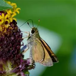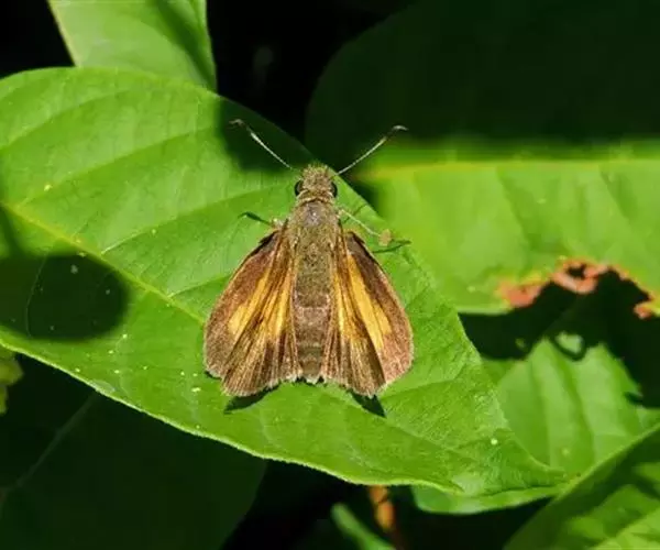 • 姜弄蝶 Udaspes folus ,又叫银斑姜蝶。幼虫吐丝粘叶成苞,隐藏其中取食,…
