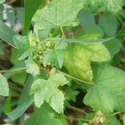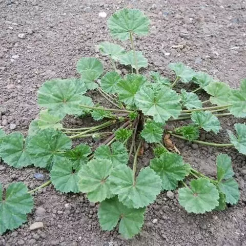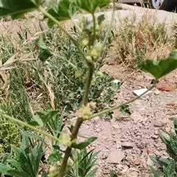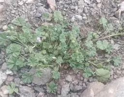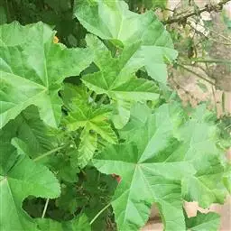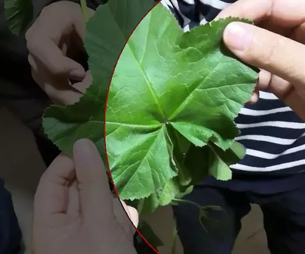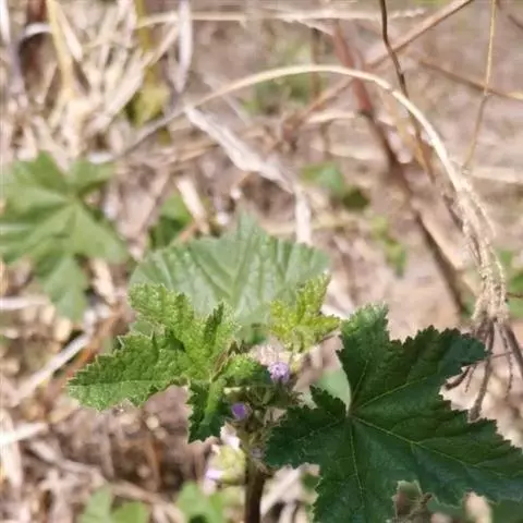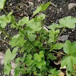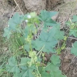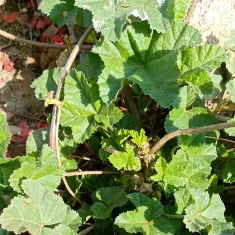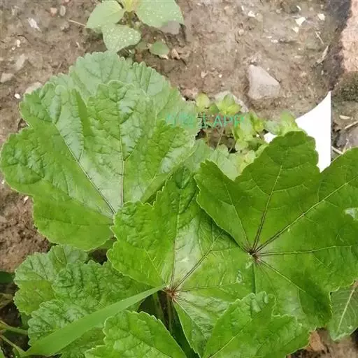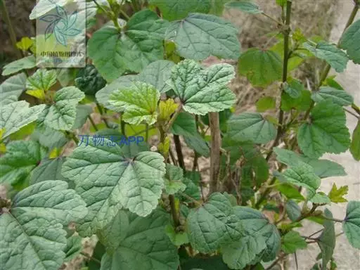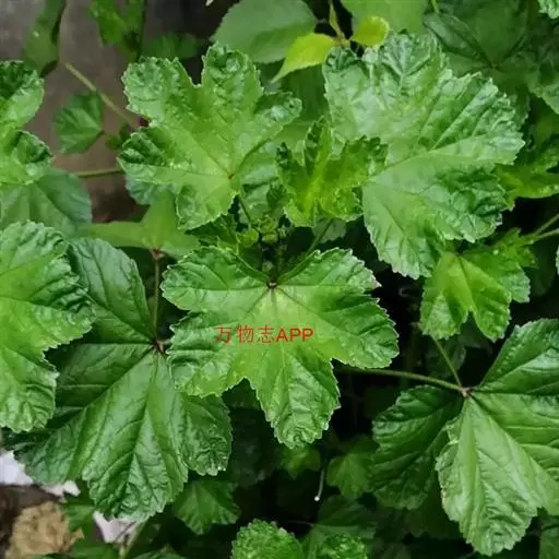 一年生草本,高1米;不分枝,茎被柔毛。叶圆形,常5-7裂或角裂,径约5-8厘米,基部心形,裂片三角状圆形,边缘具细锯齿,并极皱缩扭曲,两面无毛至疏被糙伏毛或星状毛,在脉上尤为明显;叶柄瘦弱,长4-7厘米,疏被柔毛。