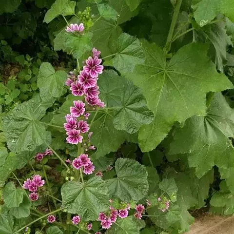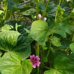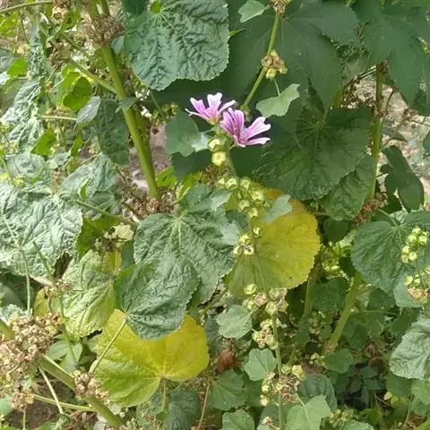 冬葵(学名:Malva crispa Linn.),锦葵科锦葵属植物。一年生草本,高1米。叶圆形,常5-7裂或角裂,裂片三角状圆形;叶柄瘦弱,长4-7厘米,疏被柔毛。花小,白色;小苞片3,披针形;萼浅杯状,5裂;花瓣5,较萼片略长。果扁球形;种子肾形,暗黑色。花期6-9月。