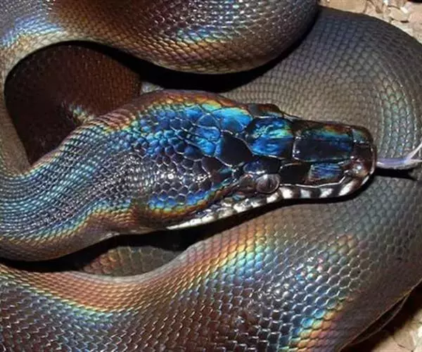 头和眼较小,鳞片富于光泽,在阳光照射下,可以闪耀出电蓝,宝石绿、血红、紫红及铜色光泽,闪鳞蛇的名称源于此。尾短,尾长仅为体全长的1/12左右。腹鳞较窄。其宽度不到相邻背鳞的3倍,这是闪鳞蛇的原始特征。