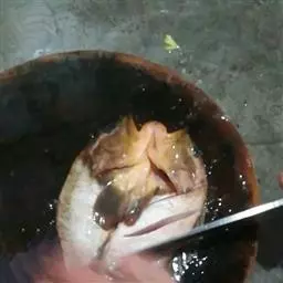 3.然后再捞出洗净,放进干净的汤锅里,再放一段葱白、一片姜,还可以放一片橙子皮,新鲜的,干陈皮也可以,这个对除腥也很有帮助。