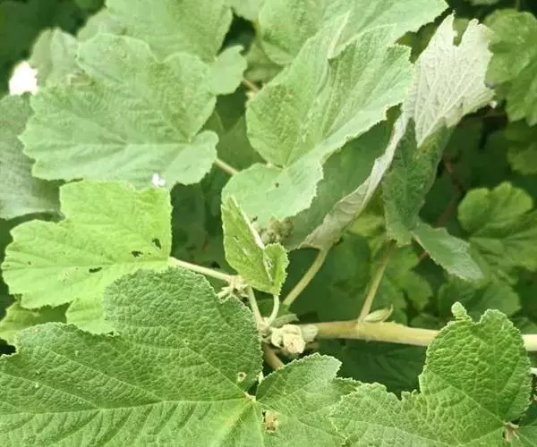 落叶灌木;单叶,近圆形或宽卵形,叶脉突起,叶柄生有浅黄色绒毛状柔毛;果实半球形。
