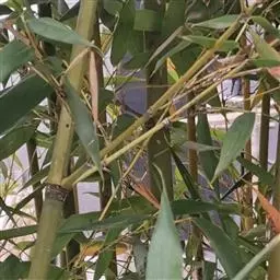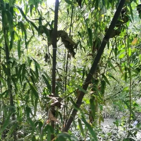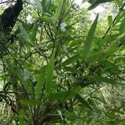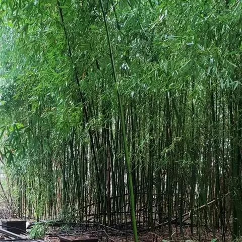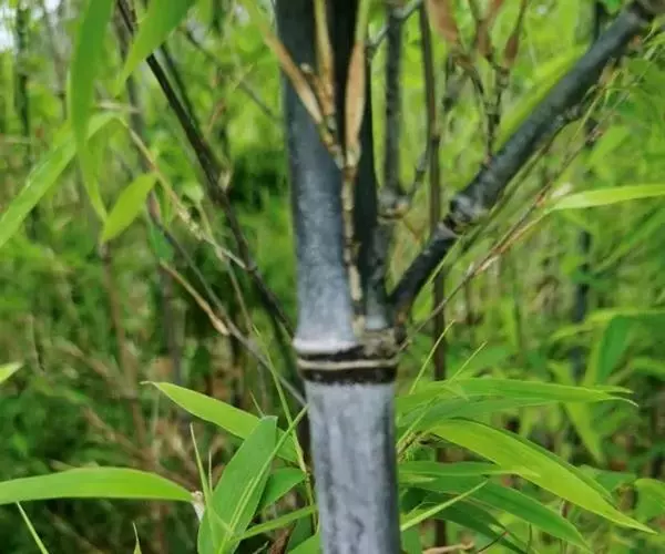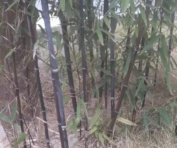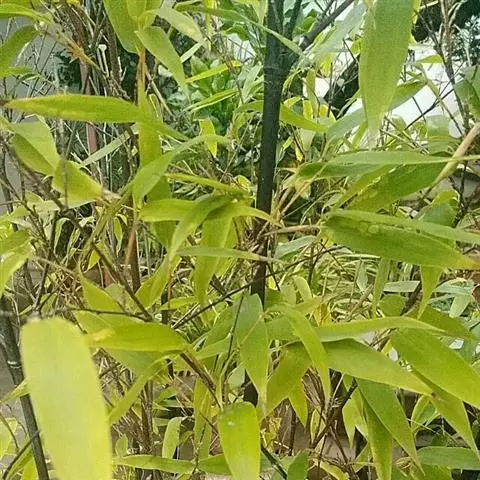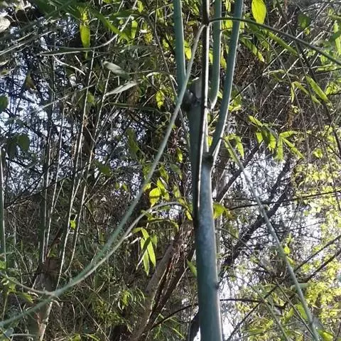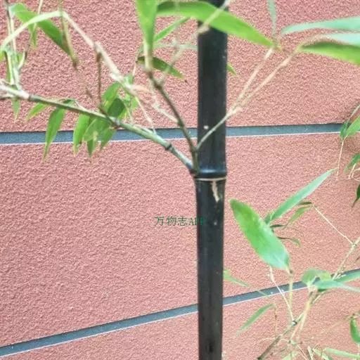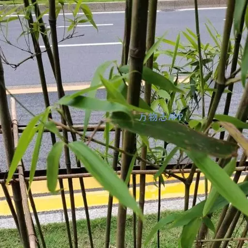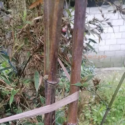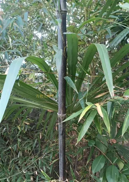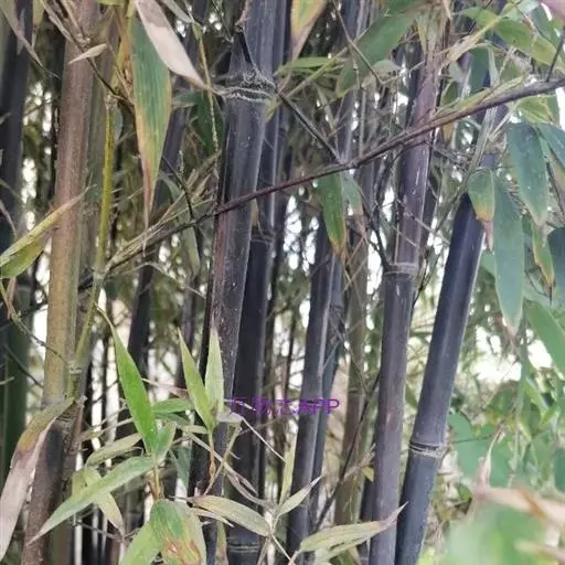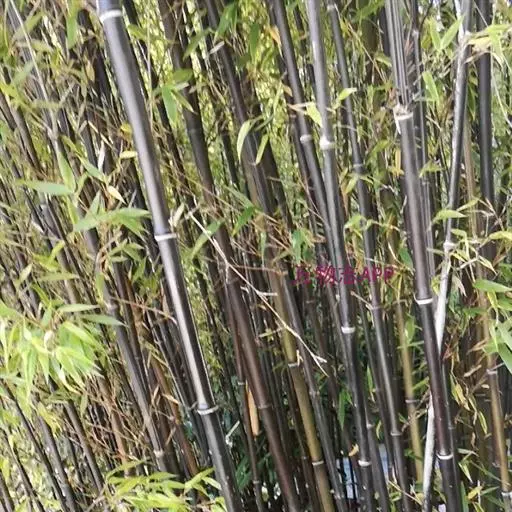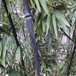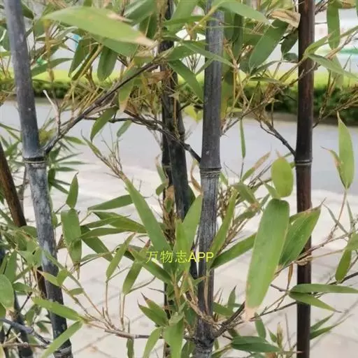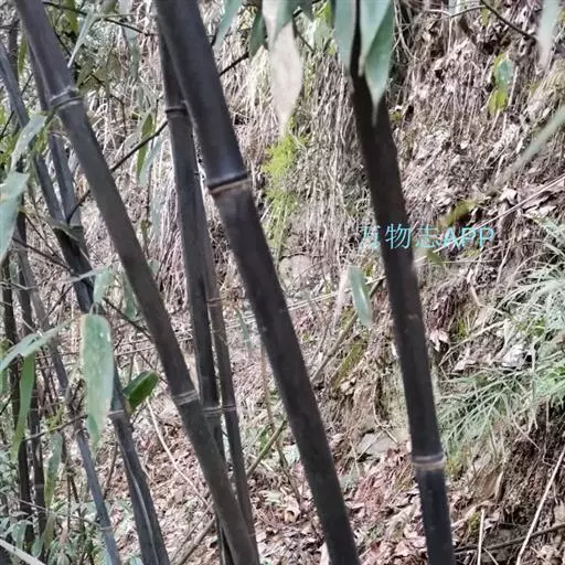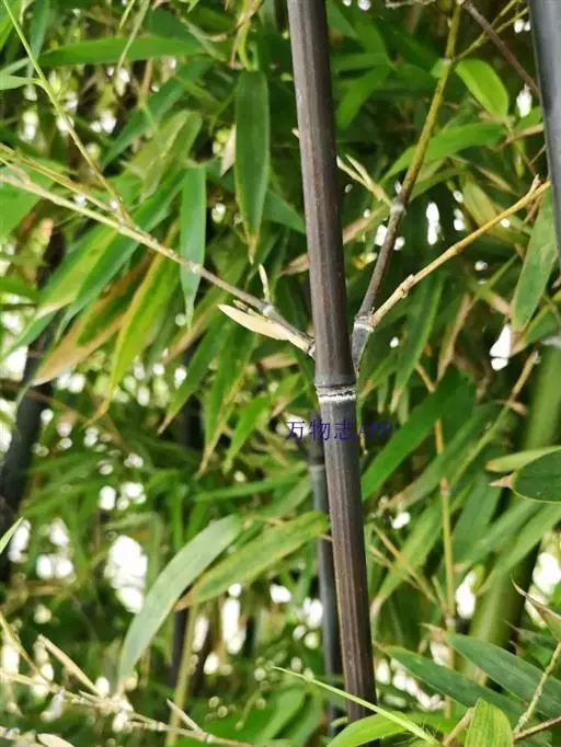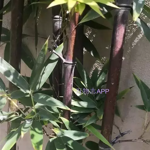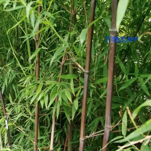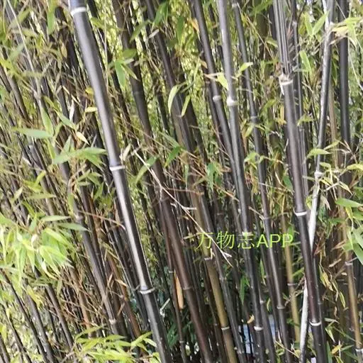紫竹(学名:Phyllostachys nigra (Lodd. ex Lindl.)Munro):竿高4-8米,稀可高达10米,直径可达5厘米,幼竿绿色,密被细柔毛及白粉,箨环有毛,一年生以后的竿逐渐先出现紫斑,最后全部变为紫黑色,无毛;箨片三角形至三角状披针形,绿色,但脉为紫色,舟状,直立或以后稍开展,微皱曲或波状。末级小枝具.2或3叶;叶片质薄,长7-10厘米,宽约1.2厘米。花枝呈短穗状,佛焰苞4-6片,除边缘外无毛或被微毛,叶耳不存在,鞘口繸毛少数条或无,缩小叶细小,通常呈锥状或仅为一小尖头,亦可较大而呈卵状披针形。小穗披针形,长1.5-2厘米,具2或3朵小花;花药长约8毫米;柱头3,羽毛状。笋期4月下旬。