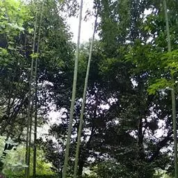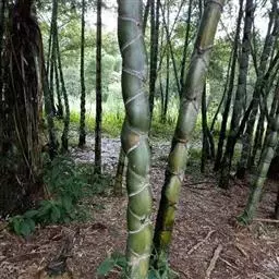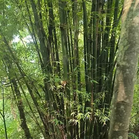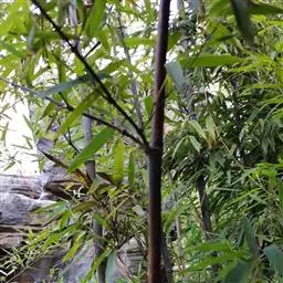 紫竹竿高4-8米,稀可高达10米,直径可达5厘米,幼竿绿色,密被细柔毛及白粉,箨环有毛,一年生以后的竿逐渐先出现紫斑,最后全部变为紫黑色,无毛;中部节间长25-30厘米,壁厚约3毫米;竿环与箨环均隆起,且竿环高于箨环或两环等高。箨鞘背面红褐或更带绿色,无斑点或常具极微小不易观察的深褐色斑点,此斑点在箨鞘上端常密集成片,被微量白粉及较密的淡褐色刺毛;箨耳长圆形至镰形,紫黑色,边缘生有紫黑色繸毛;箨舌拱形至尖拱形,紫色,边缘生有长纤毛;箨片三角形至三角状披针形,绿色,但脉为紫色,舟状,直立或以后稍开展,微皱曲或波状。