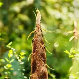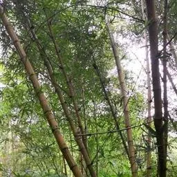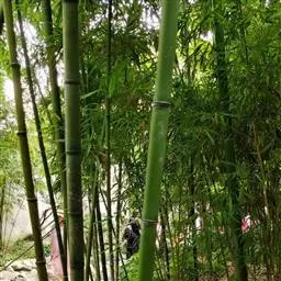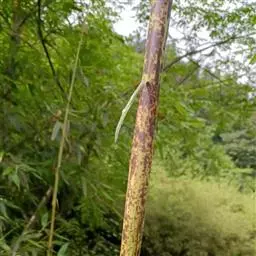 紫竹虽可种子育苗造林,但由于从育苗到成林的时间长,故一般多用移竹造林。选择秆形较小、分枝低、竹鞭粗壮的二年生竹作竹种,挖掘时按竹鞭行走方向找鞭,一般留来鞭20-30厘米长,去鞭40-50厘米长,宿土20-30千克,留枝3-5盘,削去顶梢。母竹远距离运输,必须包好扎紧。