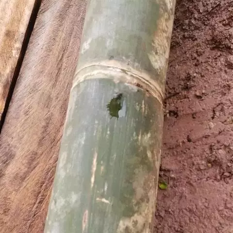 连秆埋枝的截取方法,一般采用单节段的育苗方法较理想,即保留一个完整的竹节,其上带有发育良好的分枝和具有生命力的隐芽,竹节上、下端各保留1/2的秆间部分。