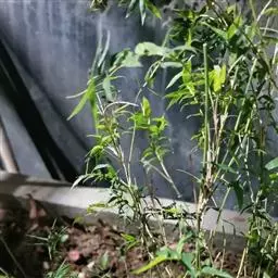 凤尾竹 Raeusch. ex Schult. ’Fernleaf’ R. A. Young)是禾本科,簕竹属孝顺竹的变种。植株较高大,杆高可达6米,竿中空,小枝稍下弯,下部挺直,绿色;竿壁稍薄;节处稍隆起,无毛;叶鞘无毛,纵肋稍隆起,背部具脊;叶耳肾形,边缘具波曲状细长繸毛;叶舌圆拱形,叶片线形,上表面无毛,下表面粉绿而密被短柔毛,小穗含小花,中间小花为两性;外稃两侧稍不对称,长圆状披针形,先端急尖;内稃线形,脊上被短纤毛,花药紫色,子房卵球形,羽毛状。成熟颖果未见。原产中国,华东、华南、西南以至台湾、香港均有栽培。凤尾竹喜温暖、湿润和阳光充足的环境,耐寒。宜土层深厚、肥沃、疏松的微酸性壤土。该种观赏价值较高,宜作庭院丛栽,也可作盆景植物。全草或根入药,味淡、微苦,性寒,有清热利湿、凉血止血、消肿解毒功效,可治痢疾、泄泻等多种病症。凤尾