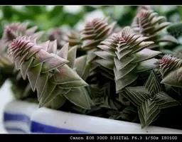 千代田之松,景天科、厚叶草属小型多肉植物,原产地是墨西哥伊达尔戈州。其叶片上的纹路是自带的,…