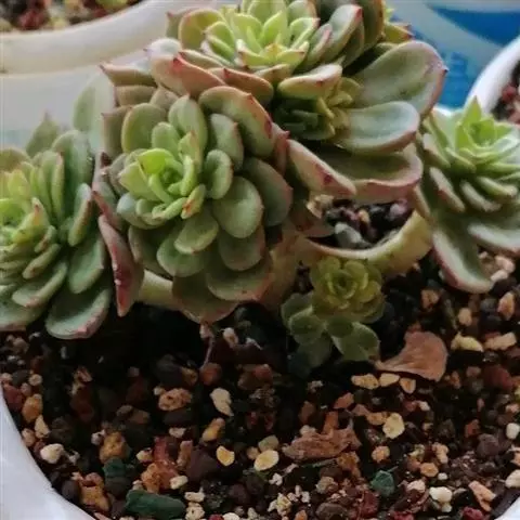 大和锦是景天科拟石莲花属的多肉植物。肉质叶排成紧密的莲座状,广卵形至散三角卵形,背面突起呈龙骨状,…