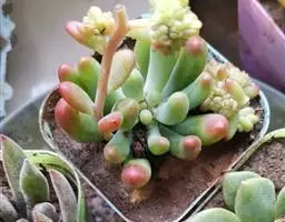 乙姬牡丹为景天科景天属多肉植物,有茎,叶互生,排列成莲座状,匙形,表面光洁,正面平坦,背面隆起,肉…