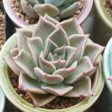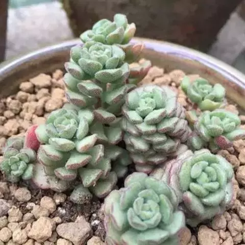 花乃井是景天科拟石莲花属的多肉植物,原产于墨西哥。株型小巧,叶片饱满,在阳光充足、温差大的环境下叶…