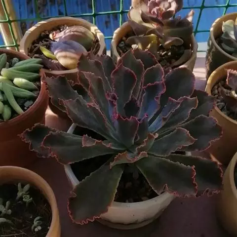 江户紫,景天科伽蓝菜属草本植物,是多年生草本花卉。花白色,但栽培中很少能见到花,常作观叶植物栽培。…