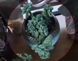 蓝黛莲是一种景天科厚叶草属植物。叶片呈略扁的圆柱形,排列成莲座状;颜色为灰绿色,…