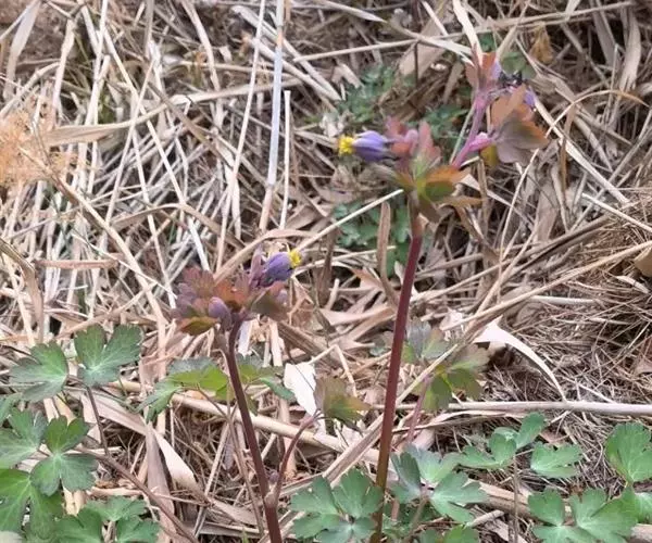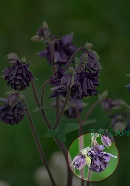 与耧斗菜的区别:萼片暗紫色或紫色。