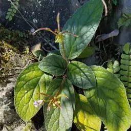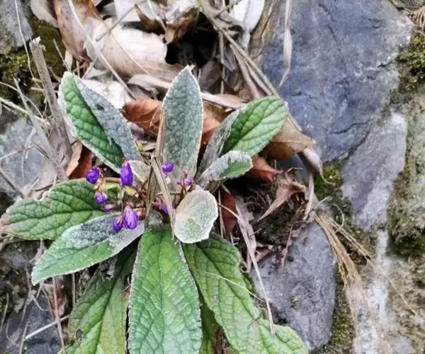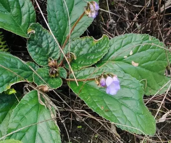 小灌木。茎常弯曲,高达30厘米,叶片长圆形,长圆状倒披针形或披针形,花期6-7月,果期8月。 产广西西南部、云南西南部及东南部、贵州、四川东南部及湖北西部。生于山坡林下石缝中或陡崖上。缅甸、泰国及越南也有分布。 本种以花大,紫蓝色;萼片大,膜质,紫红色,倒卵状匙形,干时与花冠同色,顶端圆形