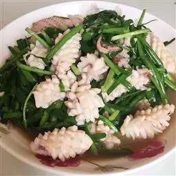 鱿鱼的切法:先从左角开始切,刀和鱿鱼呈45度的角,切那种连皮不要断刀的斜线就可以了;然后换反方向再…