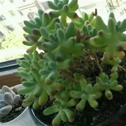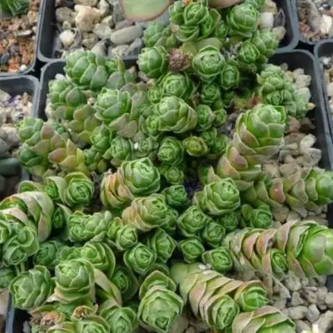 又名初霜,主要分布于美国俄勒冈州和加利福尼亚州北部。主要特征为株型呈莲座,身披白霜,叶片无毛,生长于莲座的基部,叶片呈银灰色,微微透出绿,在阳光充足的生长环境下,叶缘表现为明亮的红色。淡绿色花序,花小而多,颜色为亮黄色。