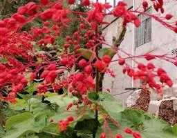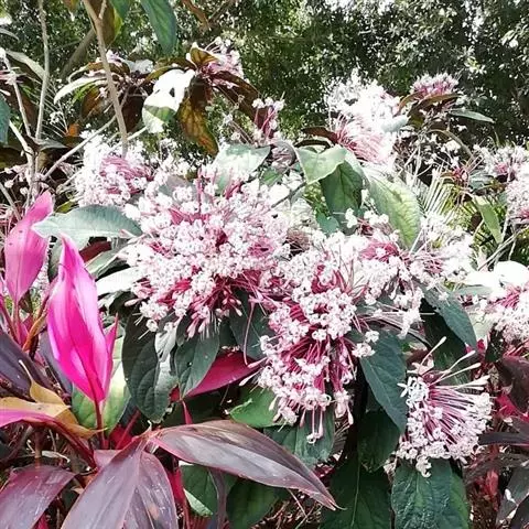 烟火树 Merr.)是唇形科、大青属常绿灌木或小乔木,株高可达4米。幼枝方形,墨绿色。叶对生,…