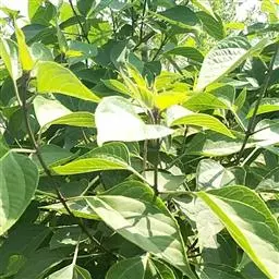叶微皱折,有的将叶及幼枝切成小段。完整叶片展平后呈长椭圆形至细长卵圆形,长5-20cm,宽3-9cm;全缘,先端渐尖,基部钝圆,上面棕黄色、棕黄绿色至暗棕红色,下面色较浅;叶柄长1.5-8cm;纸质而脆。气微臭,味稍苦而涩。以叶大、无柄者为佳。