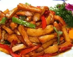 鱼香肉丝,是四川的一道特色名菜,该菜品以泡辣椒、泡姜、大蒜、黄葱、生姜和醋炒制猪里脊肉丝而成,…