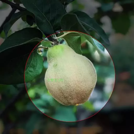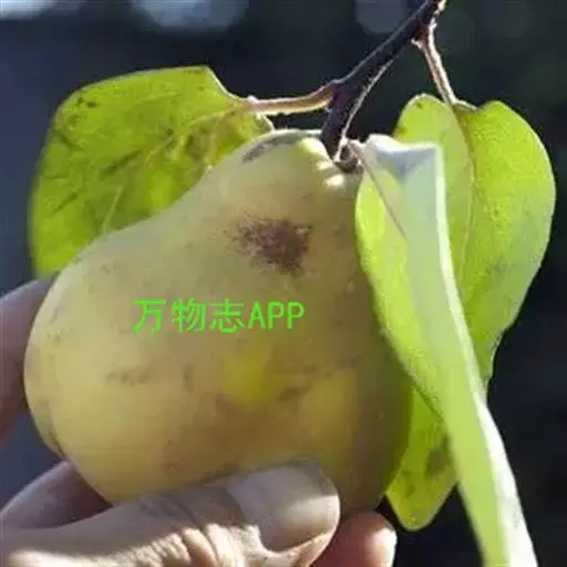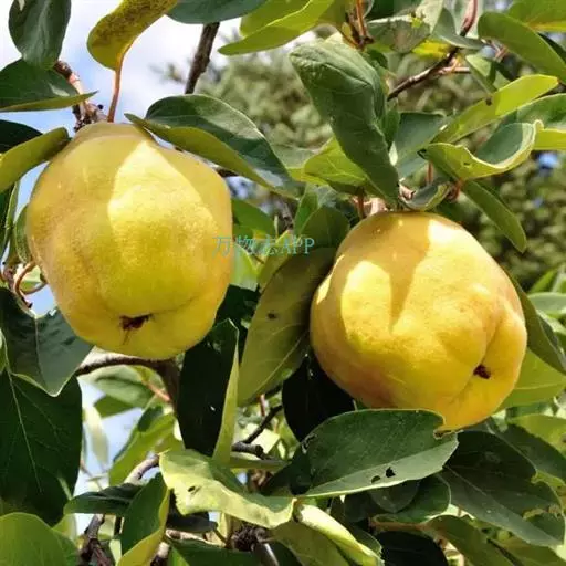 树冠较大,开张。叶长约6.5cm,宽约5.2cm,叶柄长约1.3cm。果实短圆锥形,纵径6.6cm,横径6.8cm。梗部有绿色瘤状突起。果面毡茸较薄,易脱落。花瓣残存,萼洼深广。果肉米黄色,肉韧、汁少,味酸甜,香味浓。心室5~7个,种子较多,黄褐色,可溶性固形物14%。