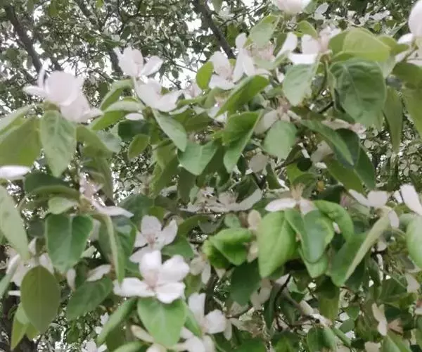 榅桲是一种落叶乔木,高达8~10米;小枝粗壮,微屈曲,幼时无毛或具稀疏柔毛,二年生枝条褐灰色,具稀疏白色皮孔;冬芽小,卵形,先端急尖,无毛或在鳞片边缘及顶端微具柔毛。