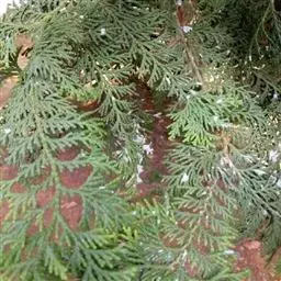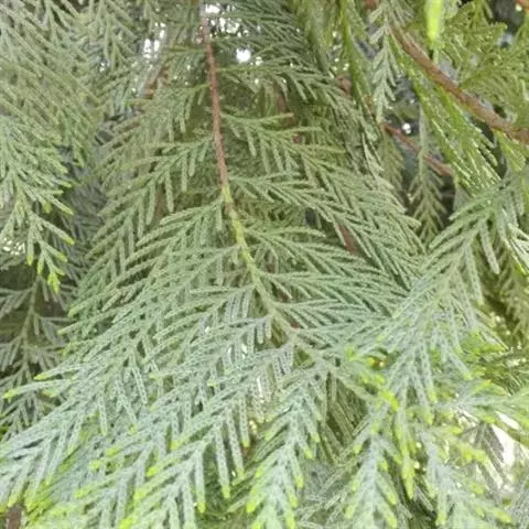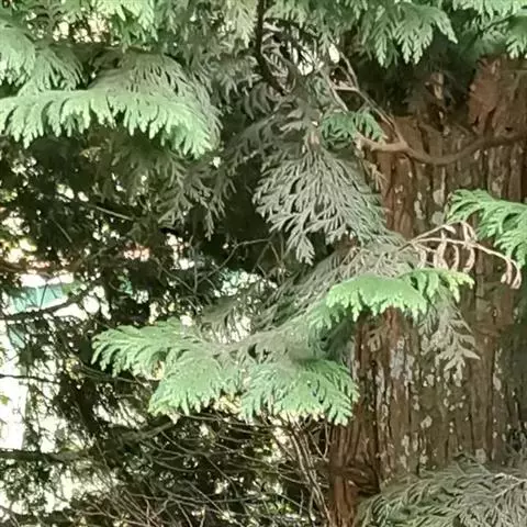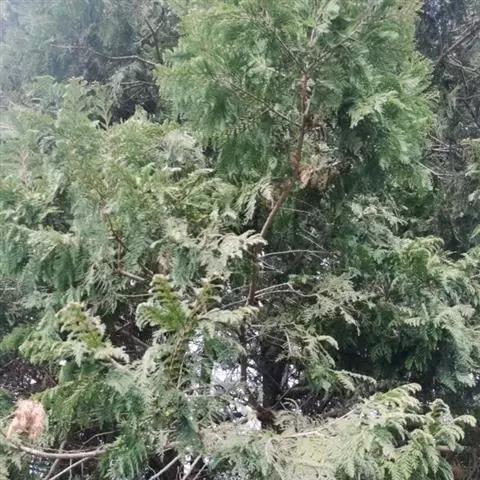 乔木,在原产地高达50米;树皮红褐色,裂成薄皮脱落;树冠尖塔形;生鳞叶小枝条扁平,排成一平面。鳞叶先 端锐尖,侧面之叶较中间之叶稍长,小枝上面中央之叶深绿色,下面之叶有明显的白粉。球果圆球形,径约6毫米,熟时暗褐色;种鳞5—6对,顶部中央稍凹,有凸起的小尖头,发育的种鳞各有1—2粒种子;种子三角状卵圆形,有棱脊,两侧有宽翅,径约2—3毫米。