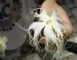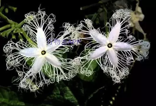 花雌雄同株。雄花组成总状花序,常有1单生雌花并生,花序梗长10-18厘米,疏被短柔毛及长硬毛,顶端具8-10花,花梗细,长5-12毫米,密被短柔毛;苞片钻状披针形,长3 (-5) 毫米;花萼筒近圆筒形,长2.5-3厘米,顶端略扩大,径4-5毫米,密被短柔毛及疏被长柔毛状硬毛,裂片狭三角形,长约2毫米,基部宽约1毫米,反折;花冠白色,裂片卵状长圆形,长7-8毫米,宽约3毫米,具3脉,流苏与花冠裂片近等长;花药柱卵球形,长约3毫米,花丝纤细,长约2毫米;退化雌蕊具3枚纤细分离的花柱。雌花单生,花梗长不及1厘米,密被长柔毛;花萼及花冠同雄花;子房棒状,长2.5-3厘米,径约3毫米,密被极短柔毛及长柔毛状硬毛。