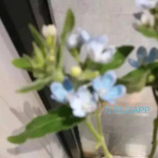 勿忘草 多年生草本。茎直立,单一或数条簇生,高20-45厘米,通常具分枝,疏生开展的糙毛,有时被卷毛。基生叶和茎下部叶有柄,狭倒披针形、长圆状披针形或线状披针形,长达8厘米,宽5-12毫米,先端圆或稍尖,基部渐狭,下延成翅,两面被糙伏毛,毛基部具小形的基盘;茎中部以上叶无柄,较短而狭。
